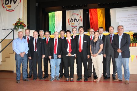 Die Delegierten wählten Verbandsjugendleiter Rüdiger Heiß und seinen bisherigen Stellvertreter und Verbandsjugendspielleiter Ottmar Burkhardt erneut. Ebenso wurden Klaus Albrecht (Spielberg) als Vorsitzender der Schulfußballausschusses, Daniela Quintana (Bad Rappenau) als Mädchenfußball-Beauftragte, Rouven Ettner (Walldorf) als Jugendvertreter und Ronja Baumgärtner (Dielbach) als Jugendbildungsbeauftragte in den neuen bfv-Jugendausschuss gewählt. Der Ausschuss wird komplettiert durch den Vorsitzenden des Freizeit- und Breitensportausschusses Günter Hörner und die schon vorher gewählten Jugendleiter der neun Kreise Rainer Hecker (Fußballkreis Tauberbischofsheim), Karl Müller (Mosbach), Bernd Rothmeier (Sinsheim), Eugen Wickenhäuser (Heidelberg), Othmar Pietsch (Mannheim), Magnus Müller (Bruchsal), Bernd Bastian (Karlsruhe) und Siegfried Bartussek (Pforzheim). Der neue Jugendleiter des Fußballkreises Buchen soll bei einem außerordentlichen Kreisjugendtag am 11. Juli gewählt werden. Verabschiedet wurden Ute Egner-Walter (bis 2011 Jugendleiterin des Fußballkreises Mosbach), Wolfgang Elfner (bis 2011 Jugendbildungsbeauftragter), Thomas Streun (bis 2013 Jugendleiter des Kreises Buchen), Harald Schäfer (bis 2013 Beisitzer für besondere Aufgaben) sowie Michael Piekny (bis 2013 Vorsitzender des Schulfußball-Ausschusses).