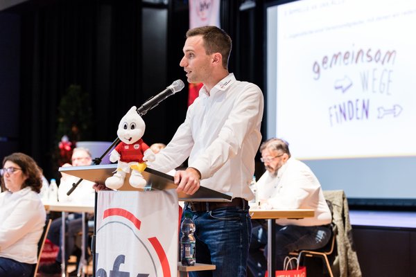 Nach seiner einstimmigen Wiederwahl richtete Rouven Ettner in seiner Rede fünf „wichtige Appelle an uns alle“: