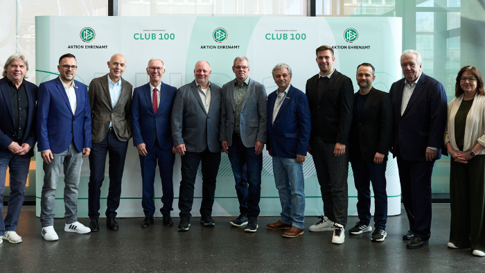 Seit der Gründung der Aktion Ehrenamt im Jahr 1997 verleiht der DFB in Zusammenarbeit mit seinen Landesverbänden jährlich den DFB-Ehrenamtspreis. In jedem der aktuell 257 Fußballkreise in Deutschland wird eine Person ausgezeichnet. Die verliehenen Auszeichnungen stehen stellvertretend als Botschaft an die knapp 1,6 Millionen ehrenamtlich und freiwilligen Vereinsmitarbeiter*innen, ohne die dem Fußball schnell die Luft ausgehen würde. Aus dieser Runde werden die besten eines Jahrgangs samt Begleitung in den „Club 100“ und zu einem Länderspiel eingeladen. Auch der Verein wird nicht vergessen und erhält einen Ballsack sowie Minitore. DFB-Vizepräsident Peter Frymuth betonte: „Das ehrenamtliche Engagement ist für jeden Fußballverein unverzichtbar und ist wesentlicher Bestandteil für ein erfolgreiches Vereinsleben. Die vielen Engagierten in unseren Verein schaffen eine Heimat für Kinder und Jugendliche und unterstützen somit die Sozial- und Jugendarbeit in den Städten und Gemeinden. Dafür gebührt ihnen allen unser Dank und Anerkennung. Die Aktion Ehrenamt ist daher ein wichtiges Zeichen in unserer Gesellschaft, das Ehrenamt zu würdigen und deutlich zu machen, welchen Wert es für alle hat.“ Alle Maßnahmen der „Aktion Ehrenamt“ zielen darauf ab, die 24.033 Fußballvereine in Deutschland bei der Gewinnung, Würdigung und Qualifizierung von Ehrenamtlichen zu unterstützen. Der „Club 100“ ist eine von etlichen Maßnahmen, die der DFB und seine Landesverbände für das Fußball-Ehrenamt umsetzen. Anfang April ist bereits die Anmeldephase für die neuen Ehrenamtspreise gestartet. „Fußballhelden“ heißt eine jährliche Bildungsreise nach Barcelona für junge Freiwillige, sprich unter 30 Jahren. Zum Ausklang des Jubiläumsjahres wird der DFB den etablierten Aktionstag „Danke ans Ehrenamt“ nutzen, um sich für 125 Jahre Engagement für den Fußballsport zu bedanken.