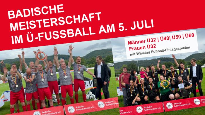 Ketsch. Die Badischen Meisterschaften im Ü-Fußball finden in diesem Jahr am 5. Juli bei der Spvgg 06 Ketsch statt. Mannschaften in den Altersklassen Ü32-Frauen sowie Männer Ü32, Ü40, Ü50 und Ü60 können sich bis zum 30. Mai 2025 anmelden.