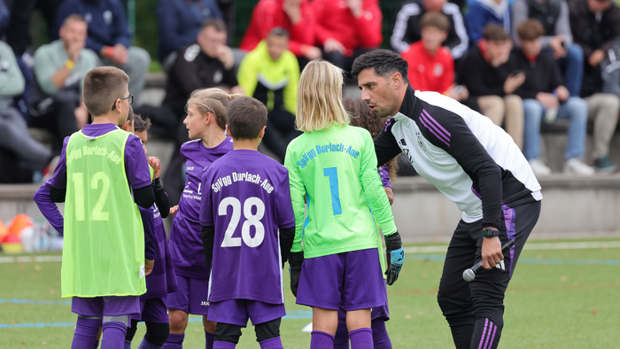 Am vergangenen Freitag versammelten sich Trainer*innen aus allen Fußballkreisen auf der Sportschule Schöneck, um hautnah mitzuerleben, wie der DFB seine Trainingseinheiten aufbaut und wie eine solche beispielhaft aussehen kann. Durch die Theorie- und Praxiseinheit führten der ehemalige Karlsruher SC-Spieler Lars Stindl und Daniel Stredak. Dabei ging es um Inhalte, wie Spielen auf mehreren Feldern, Spielen in kleinen Gruppen und viel Spielen lassen. Auf dem Kunstrasen der Sportschule hieß es dann, die Theorie in die Praxis umzusetzen. Die beiden Trainer zeigten mit den Mannschaften der SpVgg Durlach-Aue sowohl eine Einheit für die E- als auch für die C-Jugend. Währenddessen kommentierten sie immer wieder Spielsituationen und zeigten dem Publikum, wie sich Spielregeln, Spielfeldanpassungen oder die Spieleranzahl auf die Dynamik auf dem Spielfeld auswirken und wie Spieler und Spielerinnen ihr Verhalten auf dem Platz von ganz allein anpassen, ohne dass es große Einflüsse von außen bedarf.