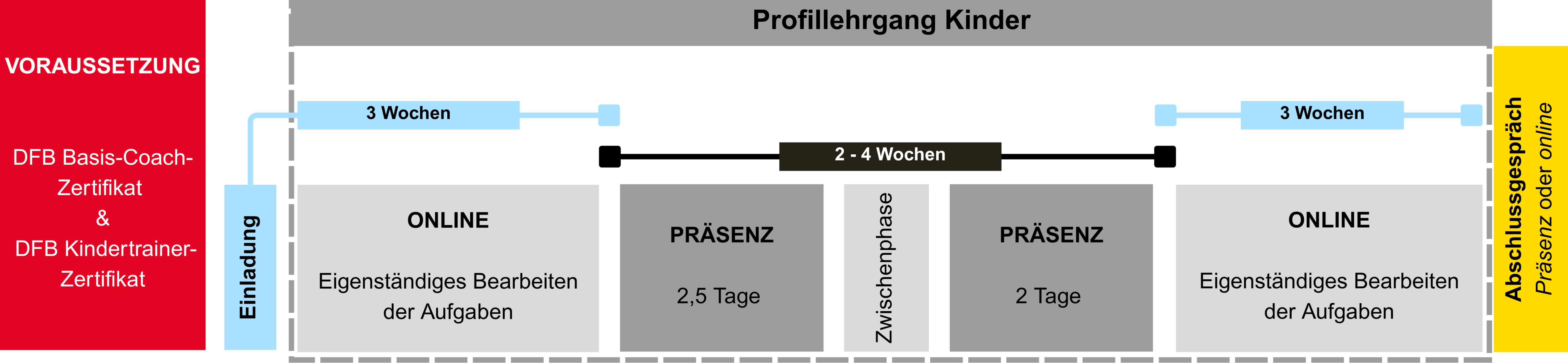 Nach dem abgeschlossenen DFB Basis-Coach-Zertifikat sowie Kindertrainer-Zertifikat können Trainer*innen mit dem anschließenden Profil Kinder die C-Lizenz abschließen. Das Profil Kinder baut thematisch auf die vorherigen Zertifikate (vor allem auf das Kindertrainer-Zertifikat) auf.