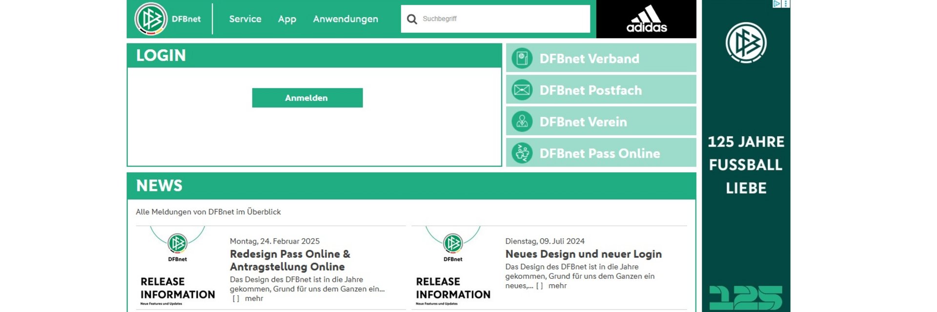 DFBnet ist eine Online-Plattform des DFB und seiner Mitgliedsverbände. Mit den bundeseinheitlichen Anwendungen wird die tägliche Arbeit der Vereine vereinfacht. Darüber hinaus steht unseren Vereinen mit DFBnet Verein und Finanz ein modernes Mitglieder- und Beitragsverwaltungsprogramm zur Verfügung, das bereits mit vielen DFBnet-Anwendungen vernetzt ist. Alle DFBnet-Anwendungen können über www.dfbnet.org aufgerufen werden.